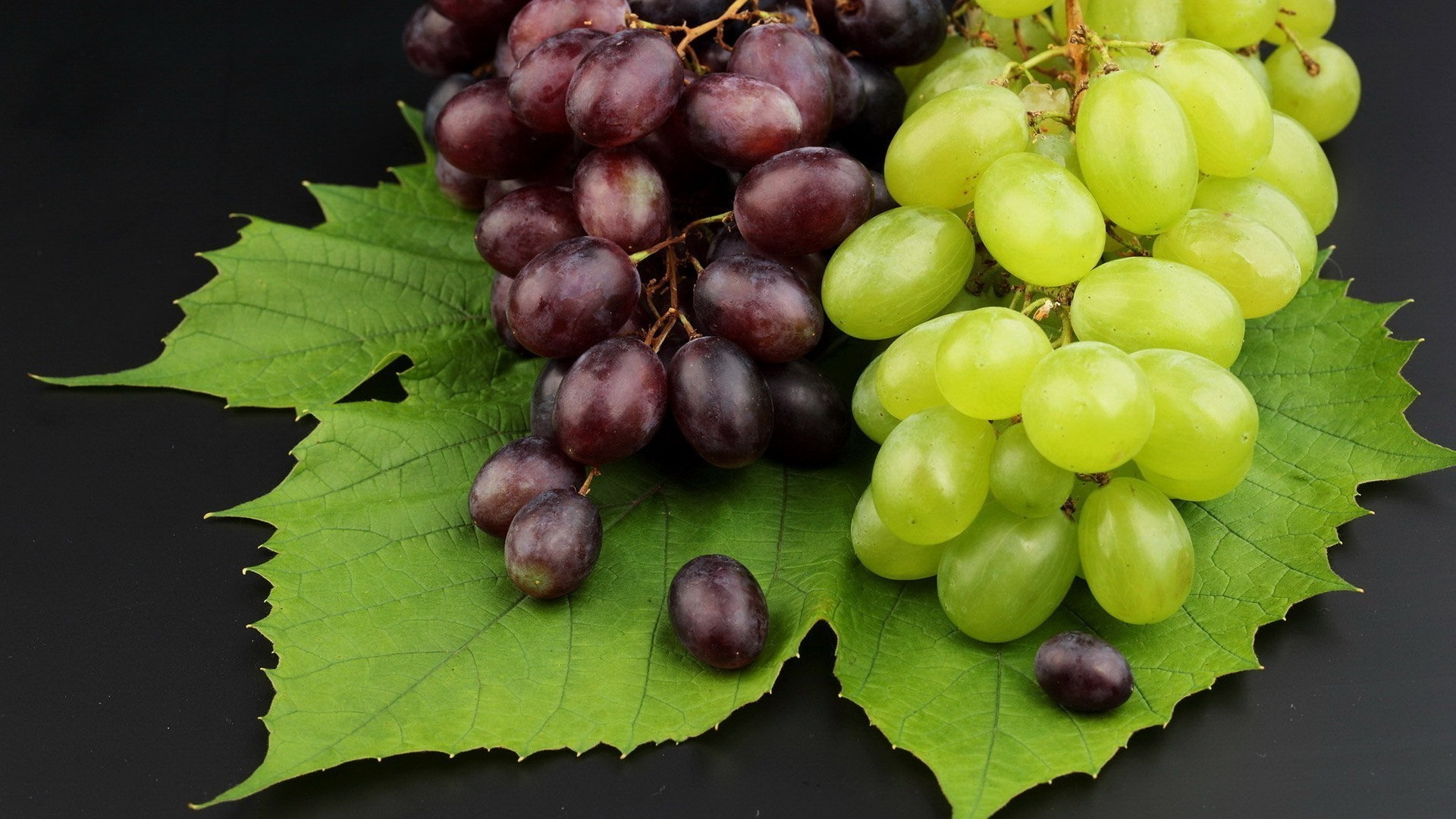 A huge bunch of yellow grapes with green foliage. Sunny grapes