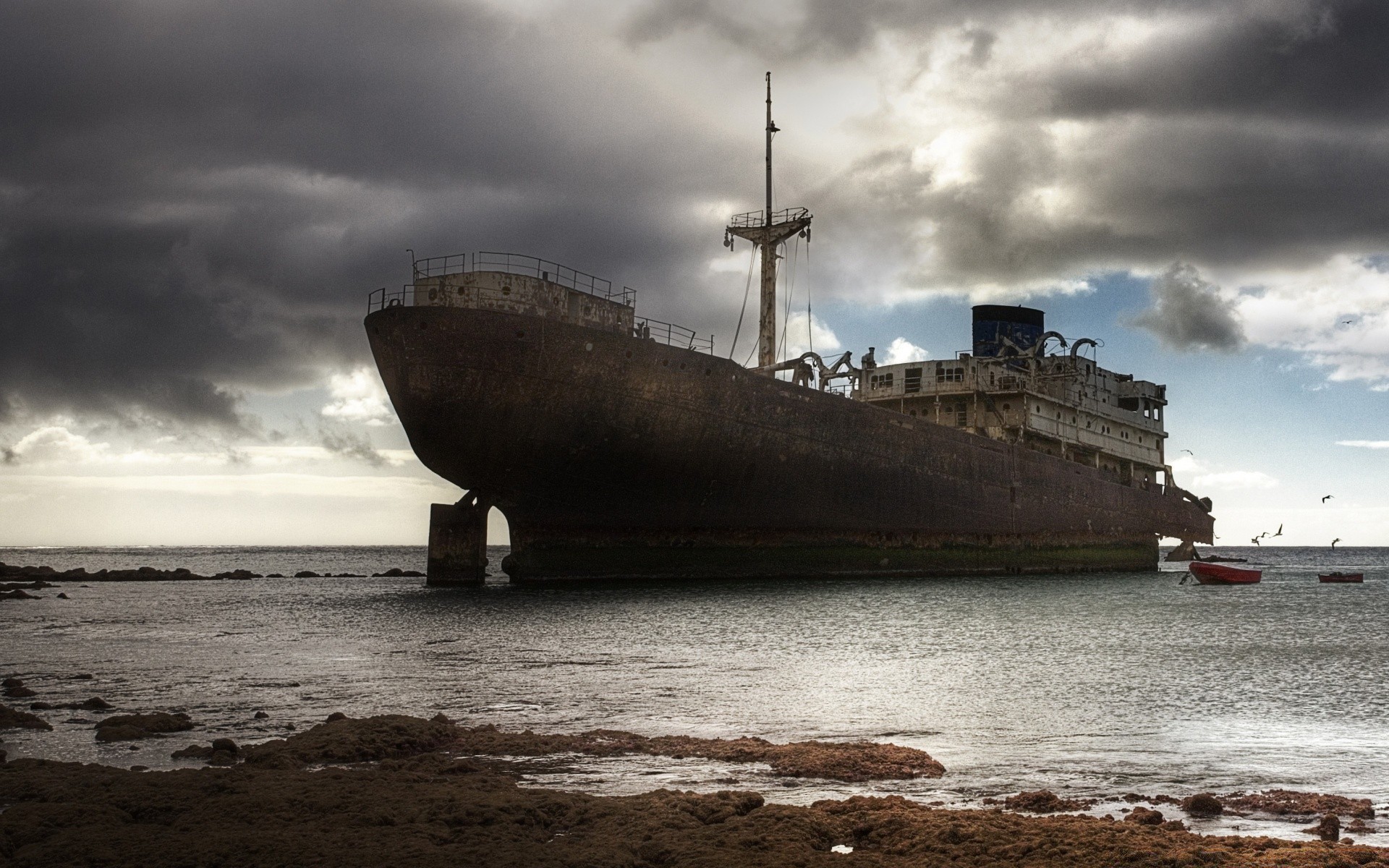 A ship at sea. Vintage. Water