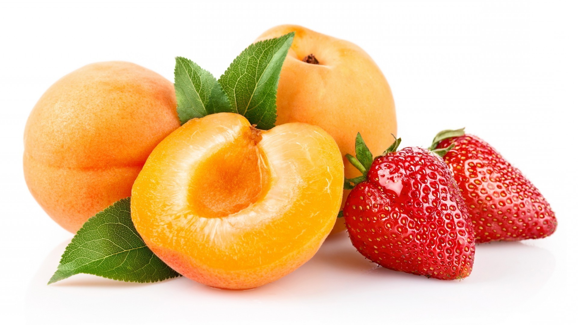 Three peaches and two strawberries