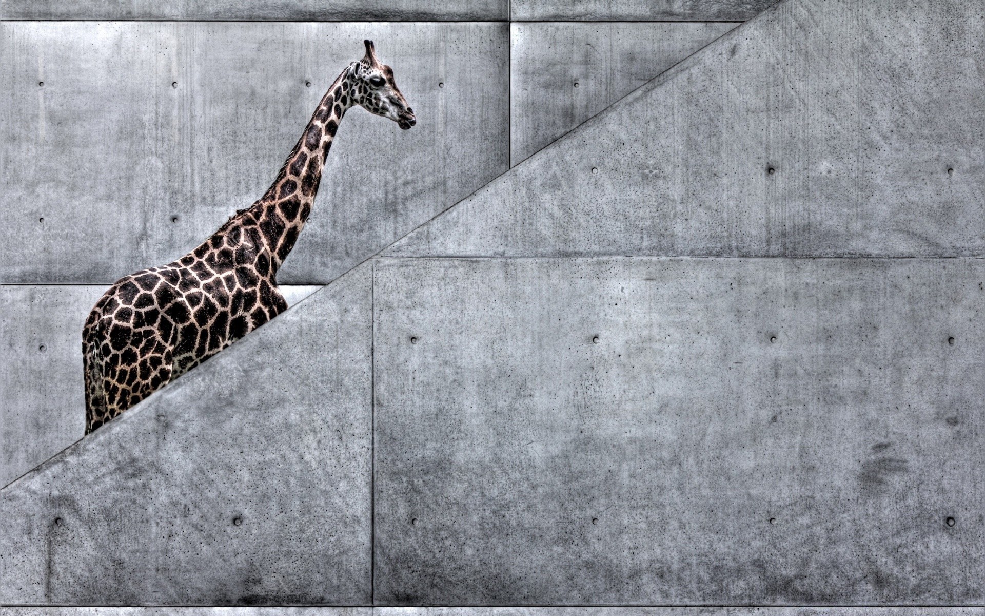 Giraffe in the texture of gray walls