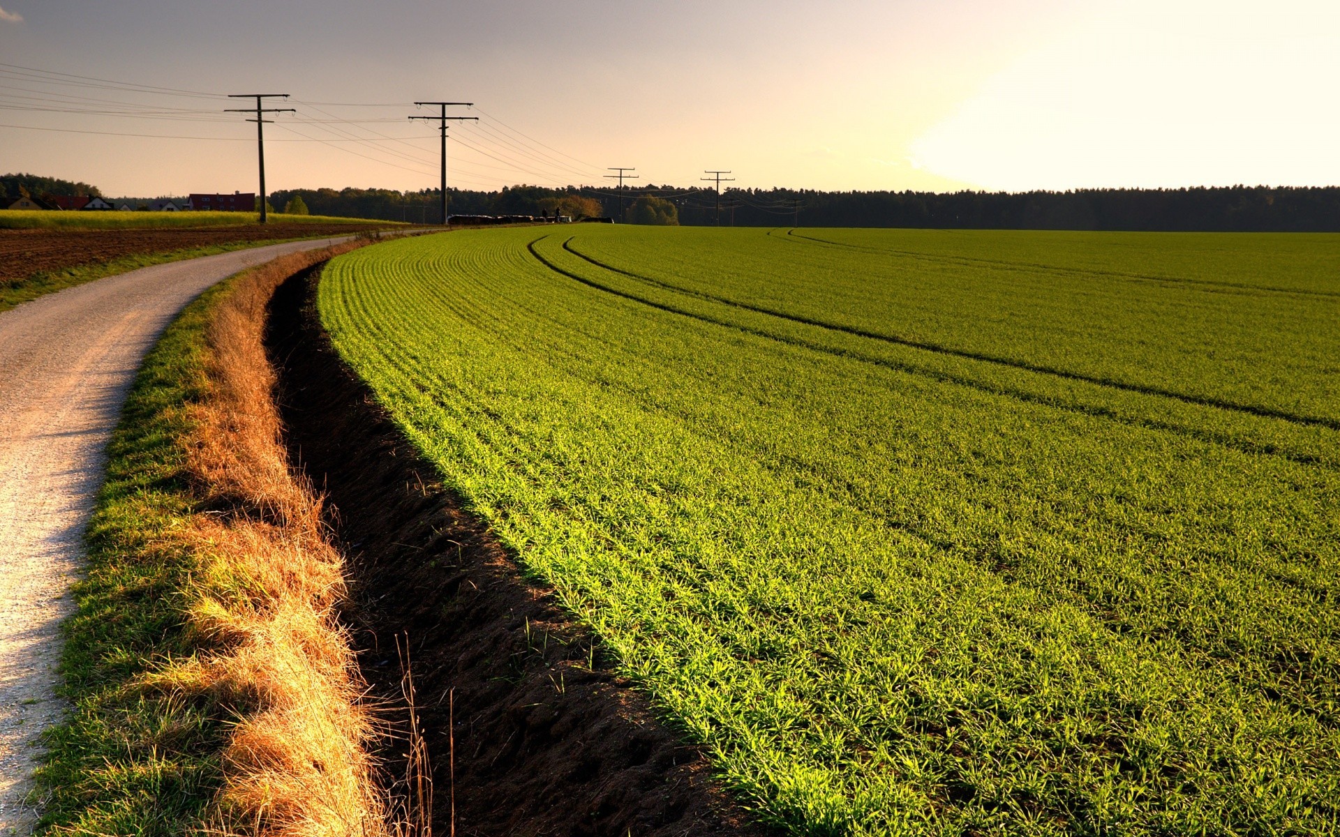 Blue sky, blinding sun. A green field illuminated by the scorching sun