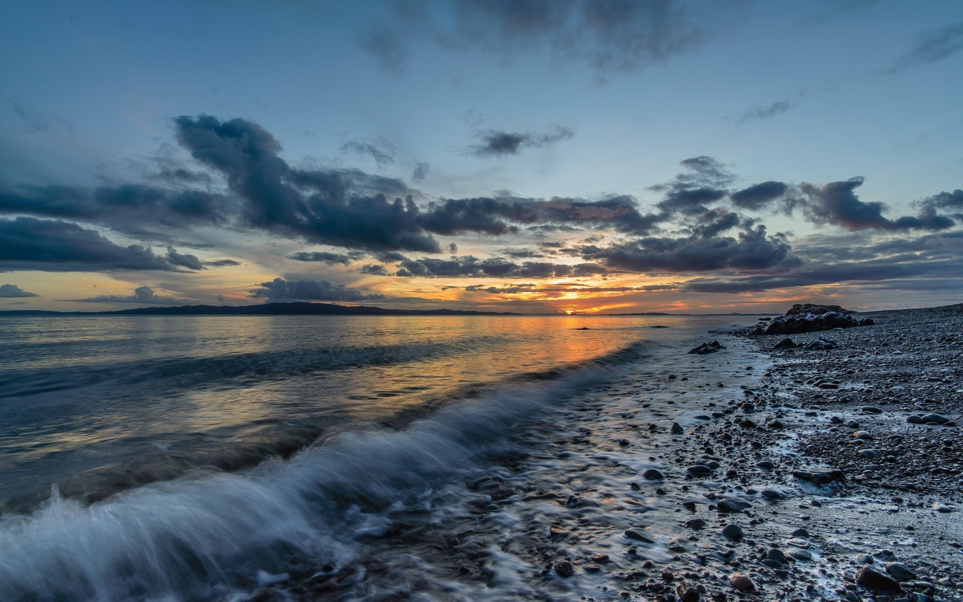 Sunset on the background of water