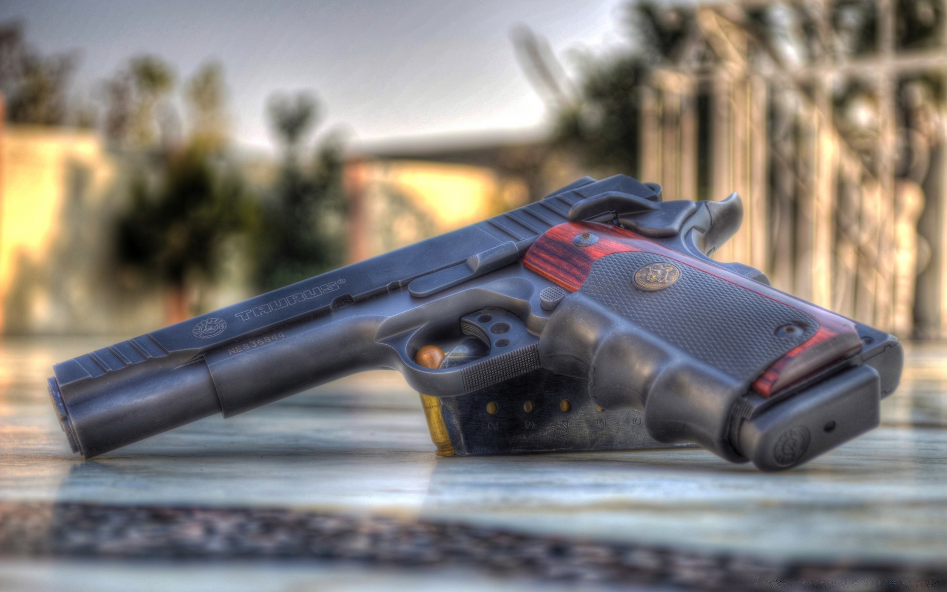 A pistol, an assault rifle, a helmet with a night vision device lying on a bulletproof vest