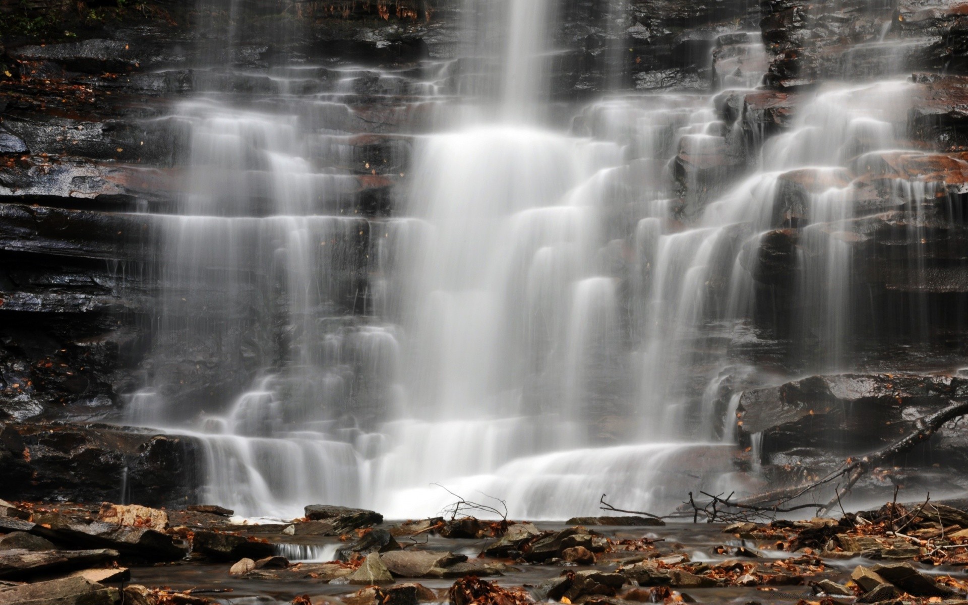 A magnificent waterfall surrounded by greenery of treesA magnificent waterfall surrounded by greenery of trees