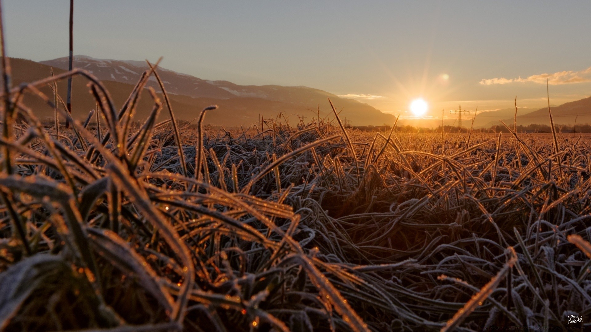Field in cloudy weather. The sun's rays illuminate the field through the storm clouds