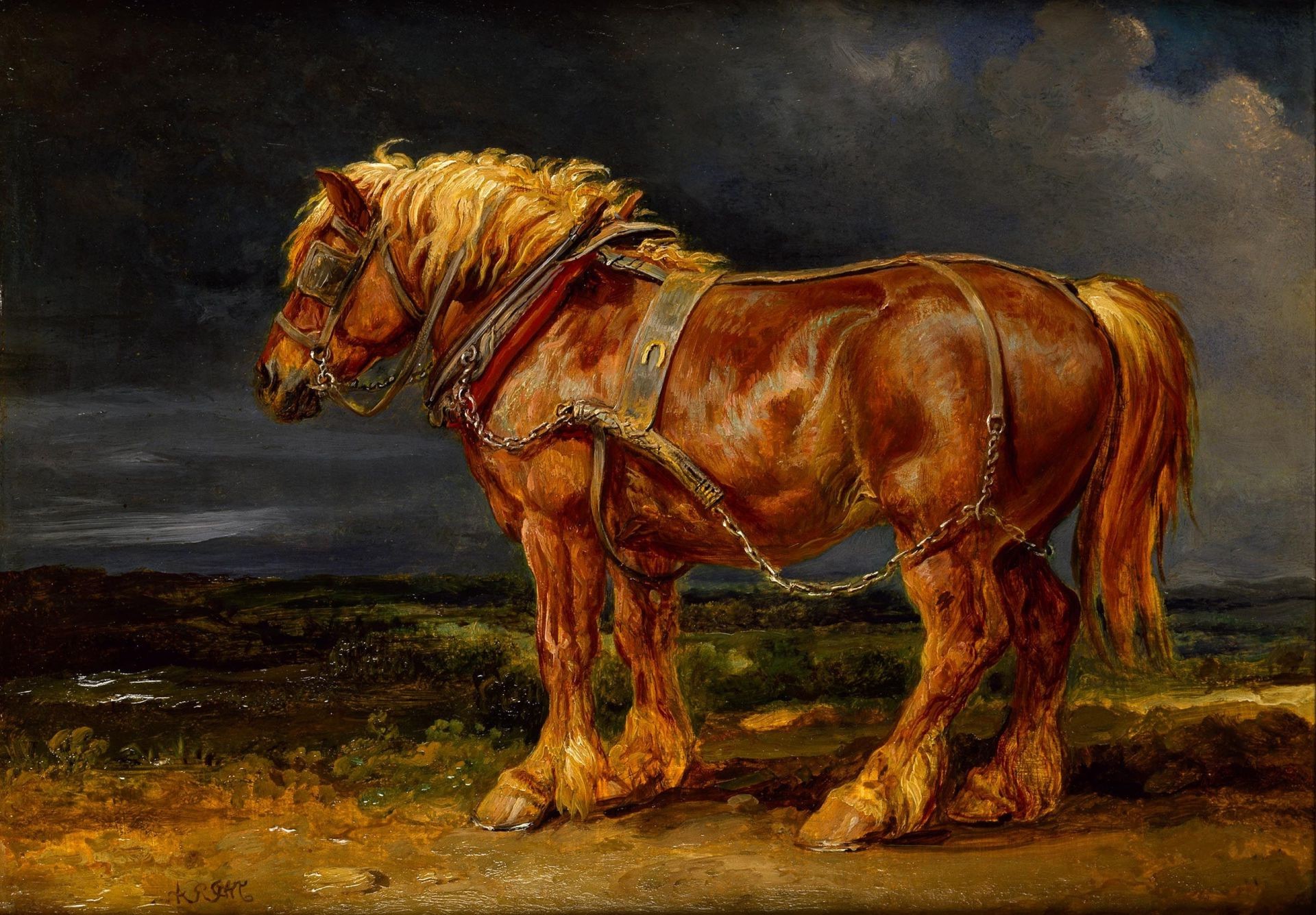 A black horse runs through a field of yellow flowersA black horse runs through a field of yellow flowers