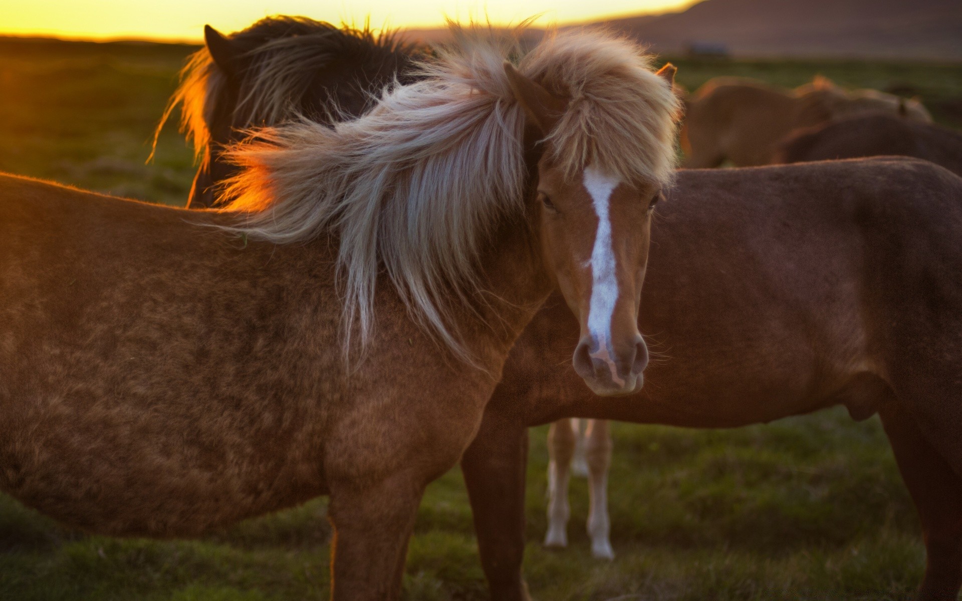A couple of horses grazing on the grass