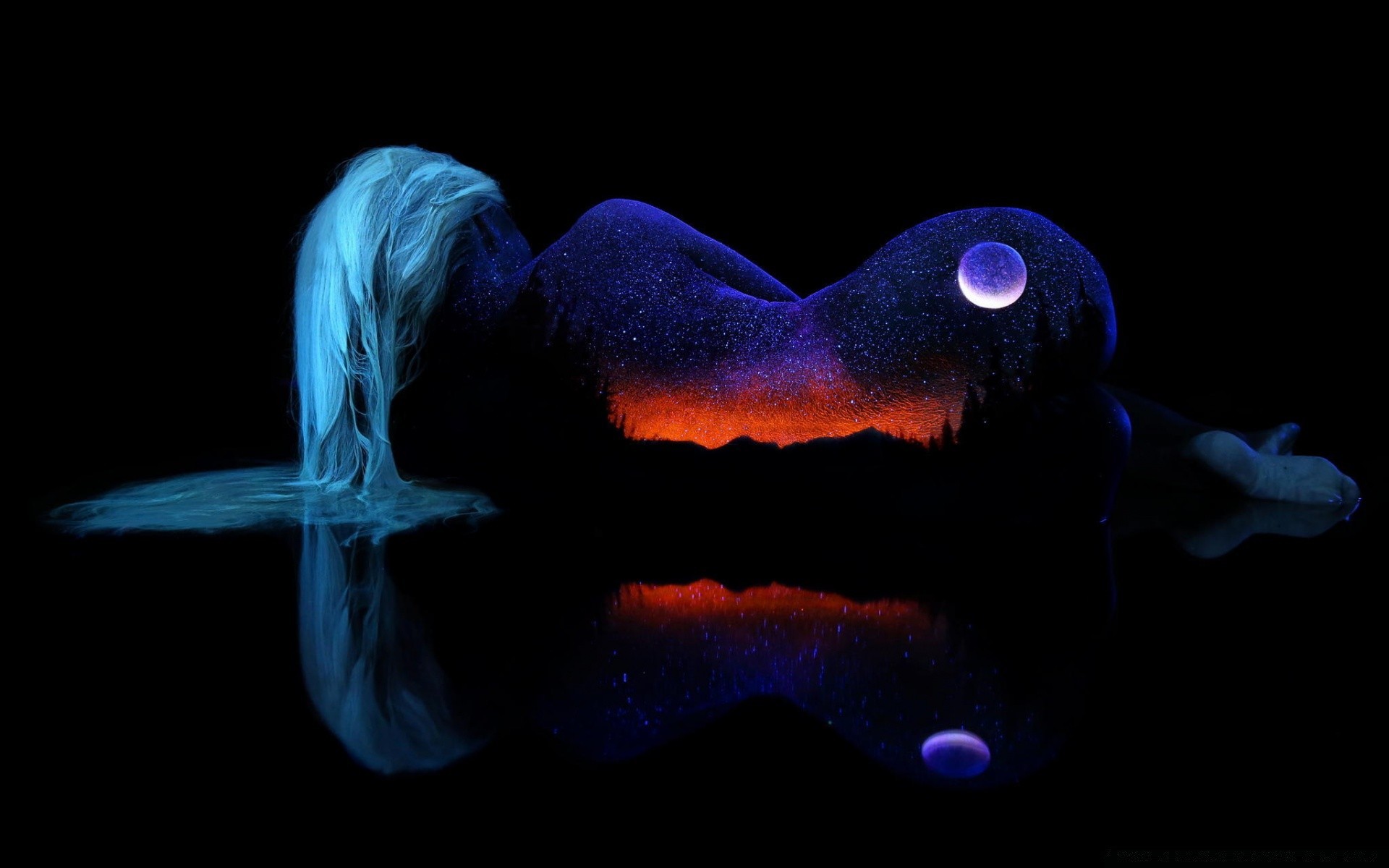 Surreal landscape on a woman