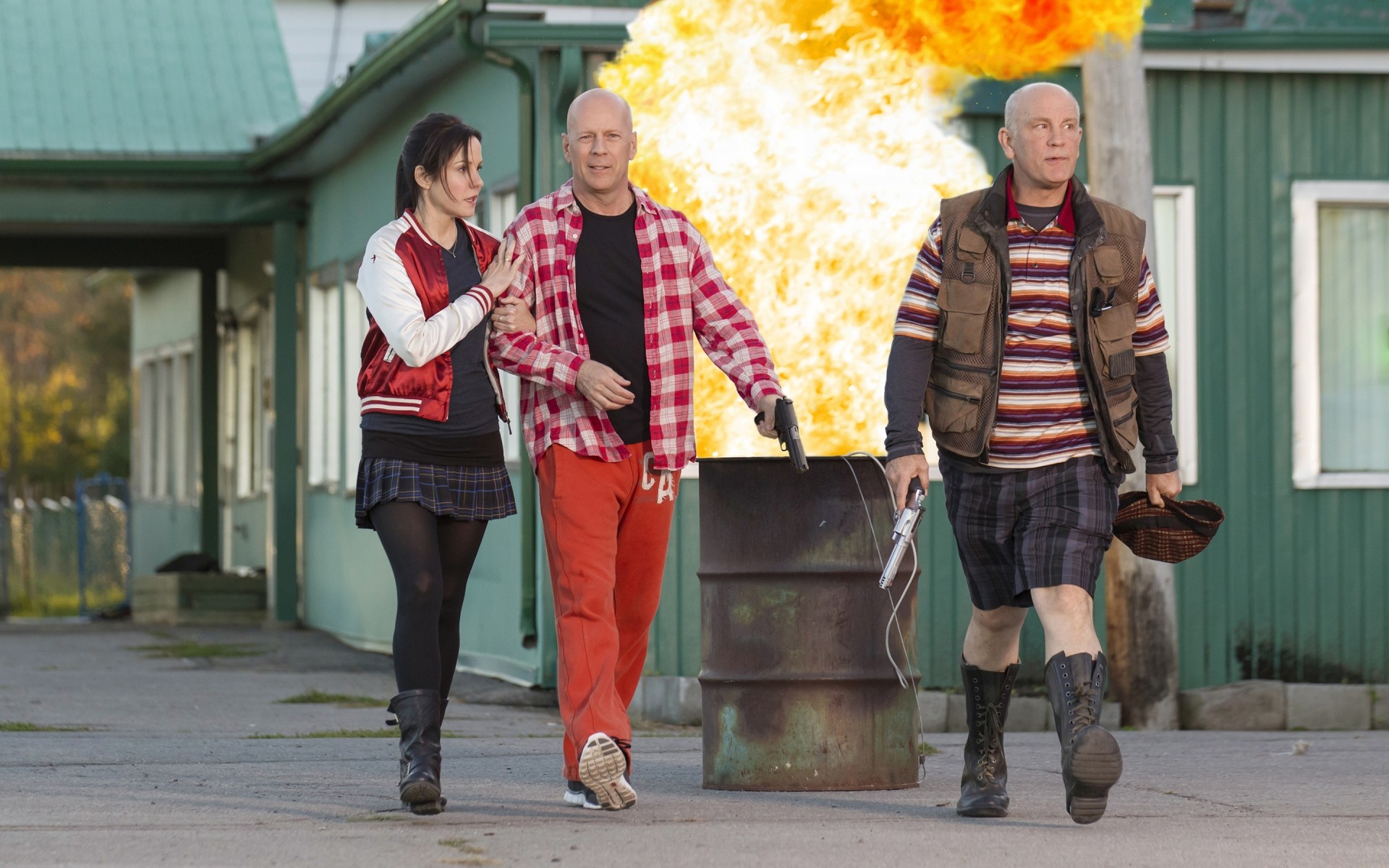 A girl in summer clothes in front of a woman on a black and white background watches a large black bird