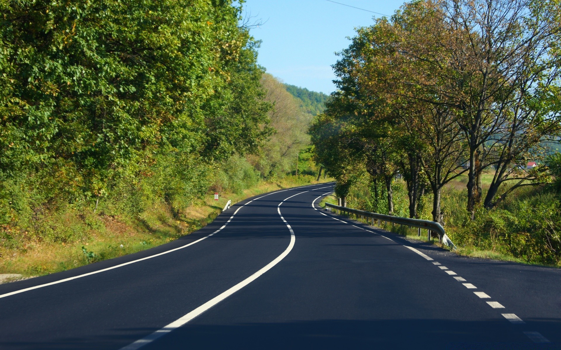 A winding road with markings and a right turn