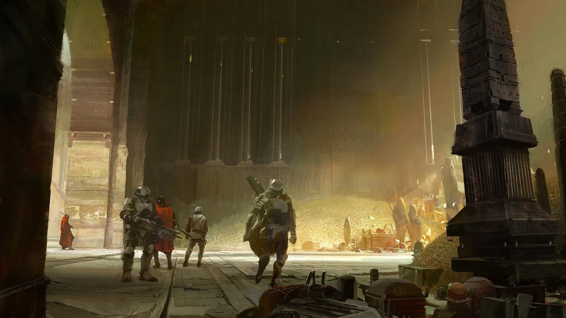Two men in metal suits are standing opposite each otherTwo men in metal suits are standing opposite each other