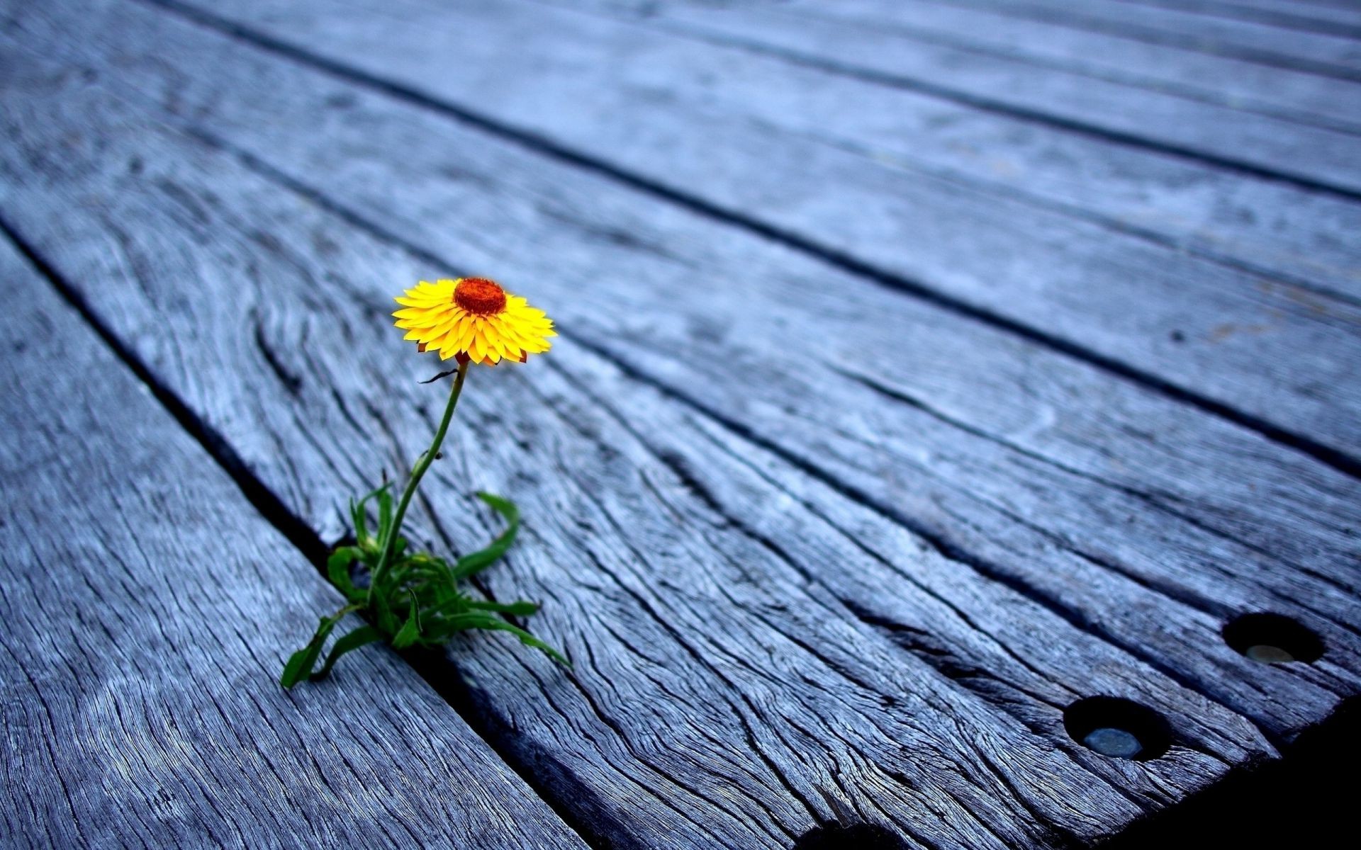 The yellow flower grows from wood