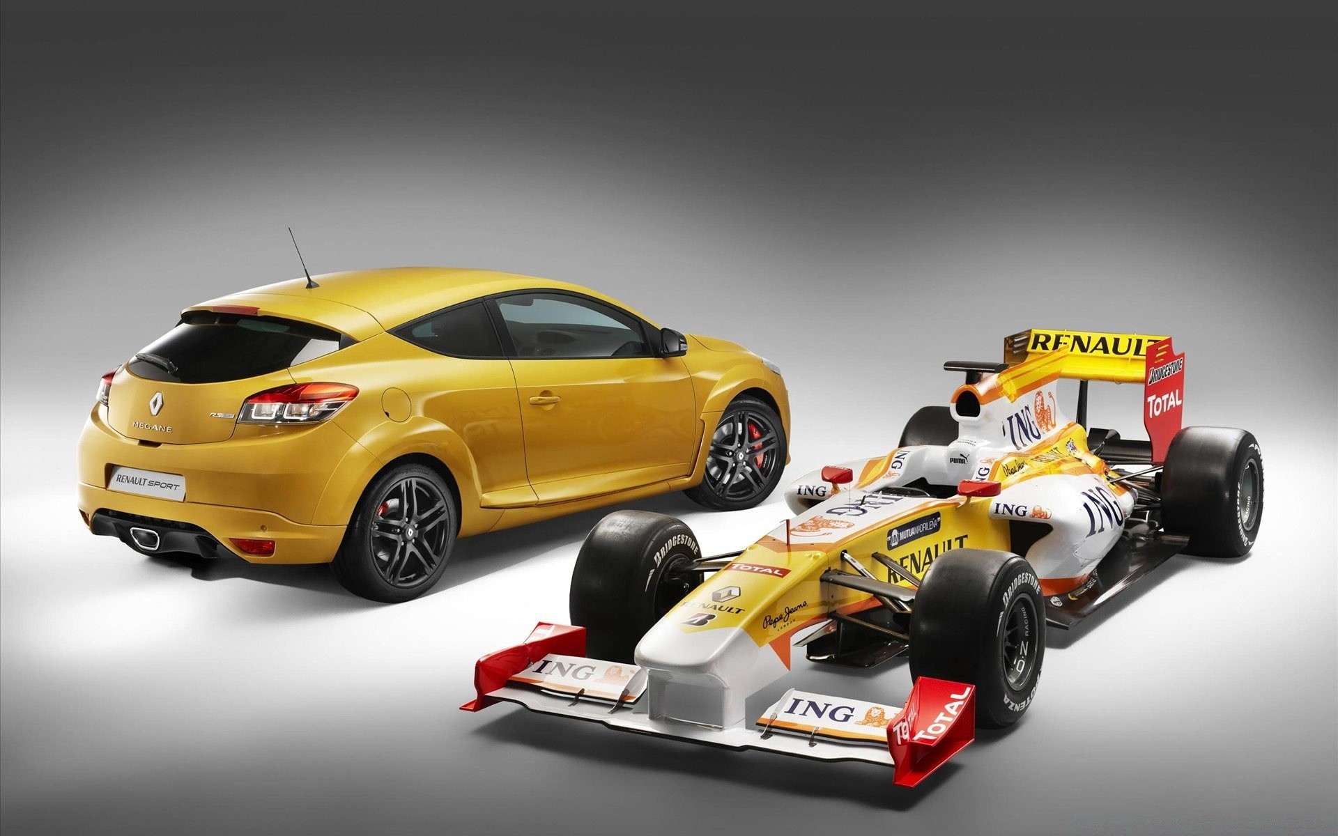Yellow sports car with big wheels formula 1