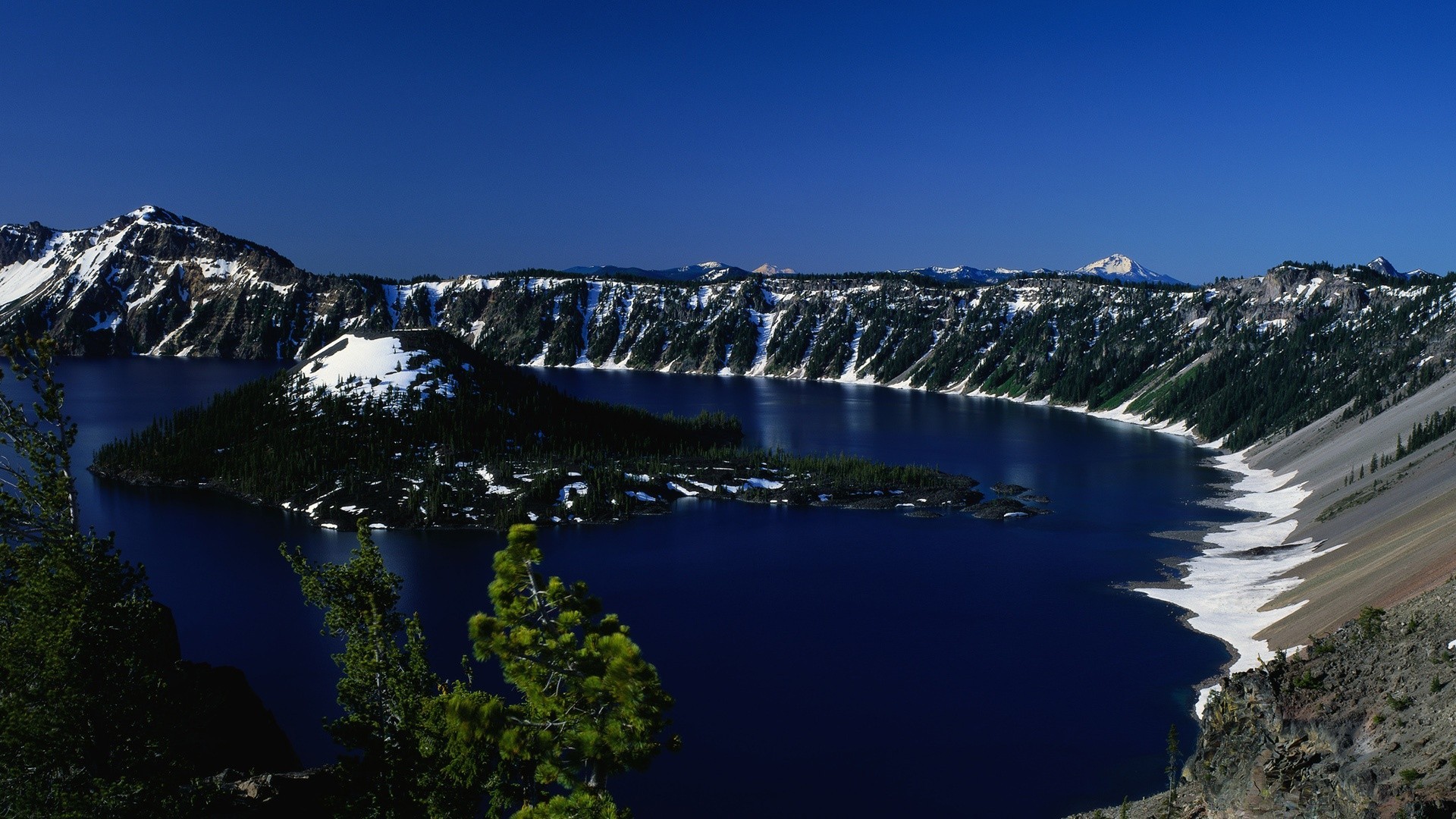 Green mountain landscape with fir trees bright sun blue sky with clouds