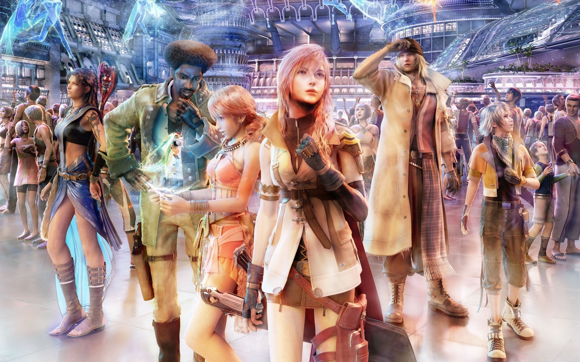 Final fantasy. a crowd of bizarrely dressed young peopleFinal fantasy. a crowd of bizarrely dressed young people