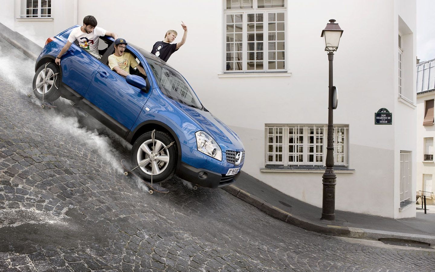 A company of young people is testing a car
