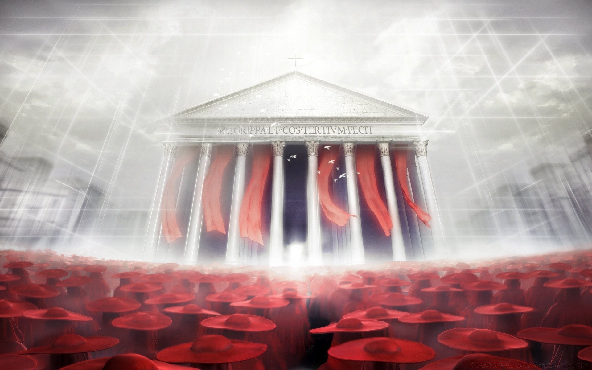 Night. A bonfire is burning. The reflection of the forest in the lake is beautiful