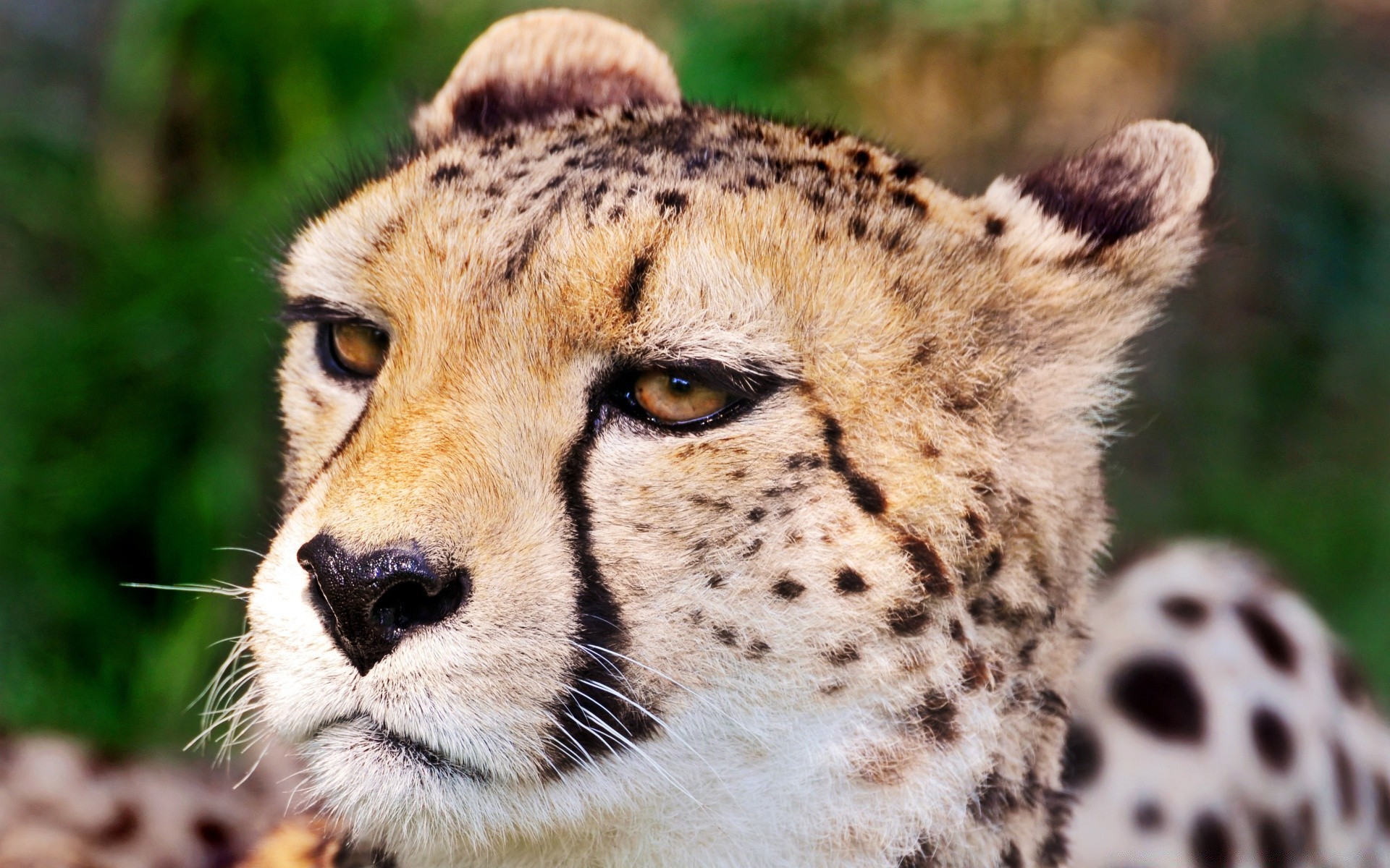 Cheetah lies in the green grass